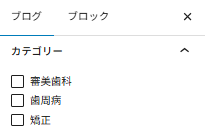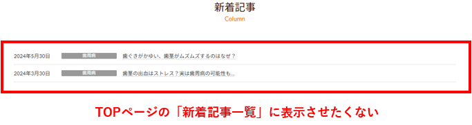 画面右側「ブログ」内にある「カテゴリー」にはチェックを入れないで下さい。(チェックを入れるとTOPページの「新着記事一覧」に表示されてしまう為です)