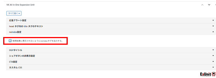 原稿を入力した後、ページ下「noindex設定」内にある「検索結果に表示されないようにnoindexタグを出力する。」にチェックを入れます。
