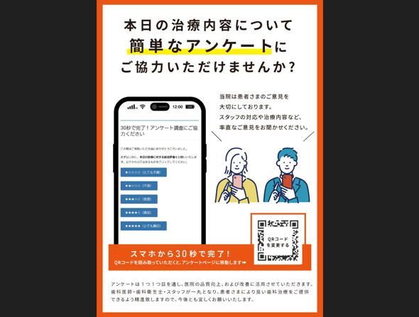 ポスターには、「口コミ獲得アンケートページ」へ遷移するQRコードを掲載し、患者が簡単にアクセスできるようにします。