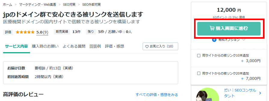 SEO対策の被リンクを外注する際は、「サービスをそのまま購入するパターン(購入方法②)」で依頼します。